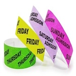 - Weekday Access wristbands have VIP designs and have barcoding and numbering spaces for nightclubs and events.